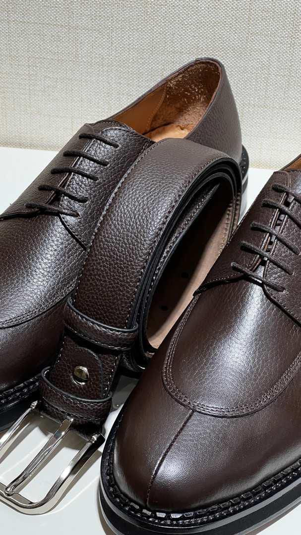 Le design classique de blucher à bout fendu fonctionne bien avec les costumes jusqu'aux jeans. La semelle double en cuir extrêmement durable de JM Weston et une pointe en acier complètent les détails.